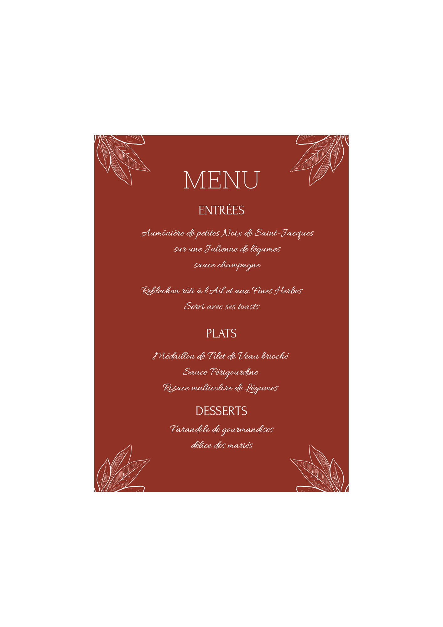 Prix 3€ menu de table personnalisé + cadre