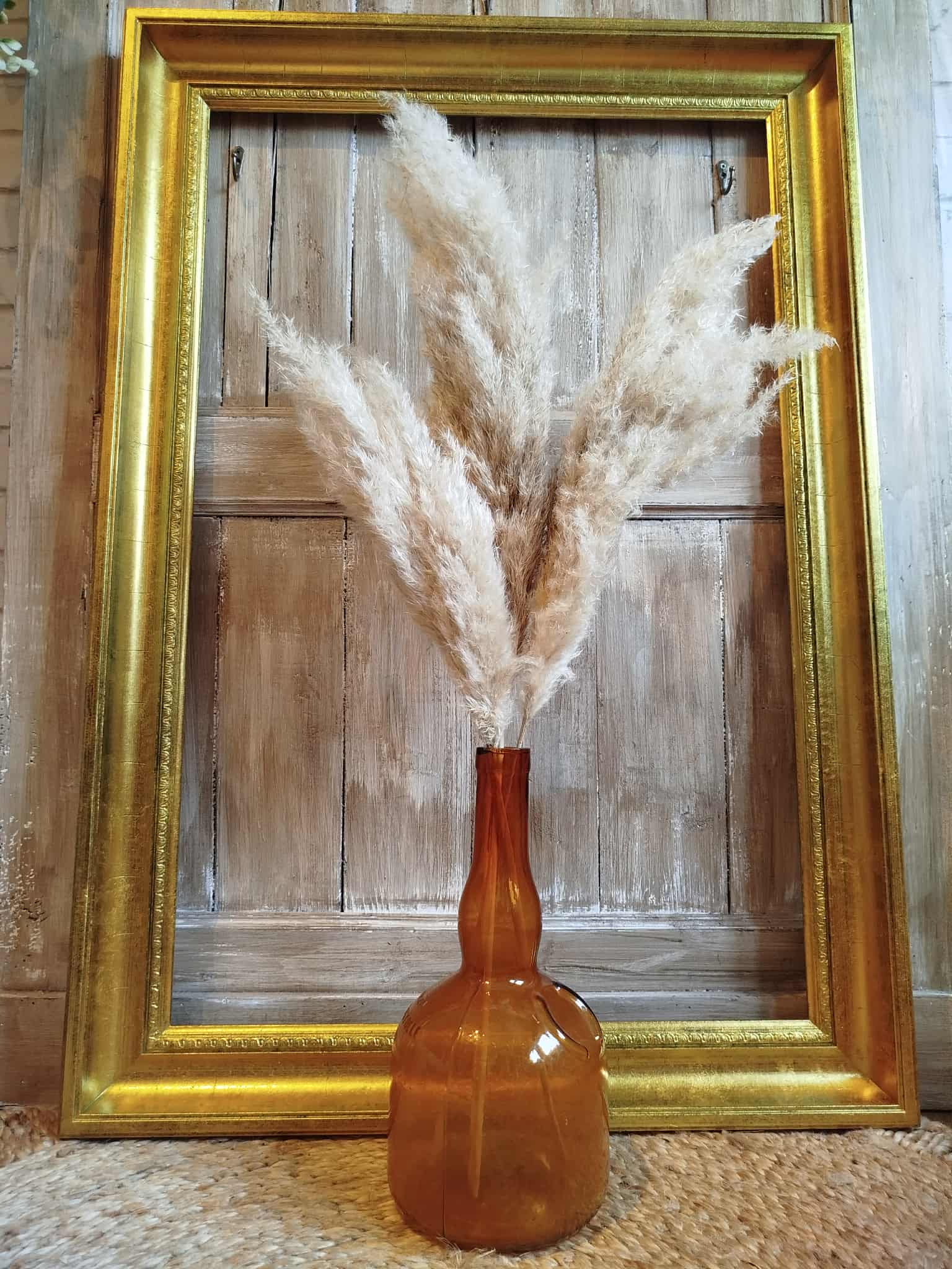 Apportez une touche authentique et chaleureuse à votre décoration avec cette bouteille vintage en verre ambré. Parfaite comme objet décoratif, elle peut accueillir fleurs, branches séchées ou simplement servir de pièce vintage pour sublimer vos mises en scène.