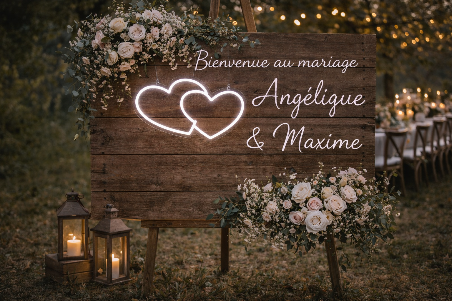Suspendu sur un backdrop, ou bien sur votre coin urne, photoBooth…