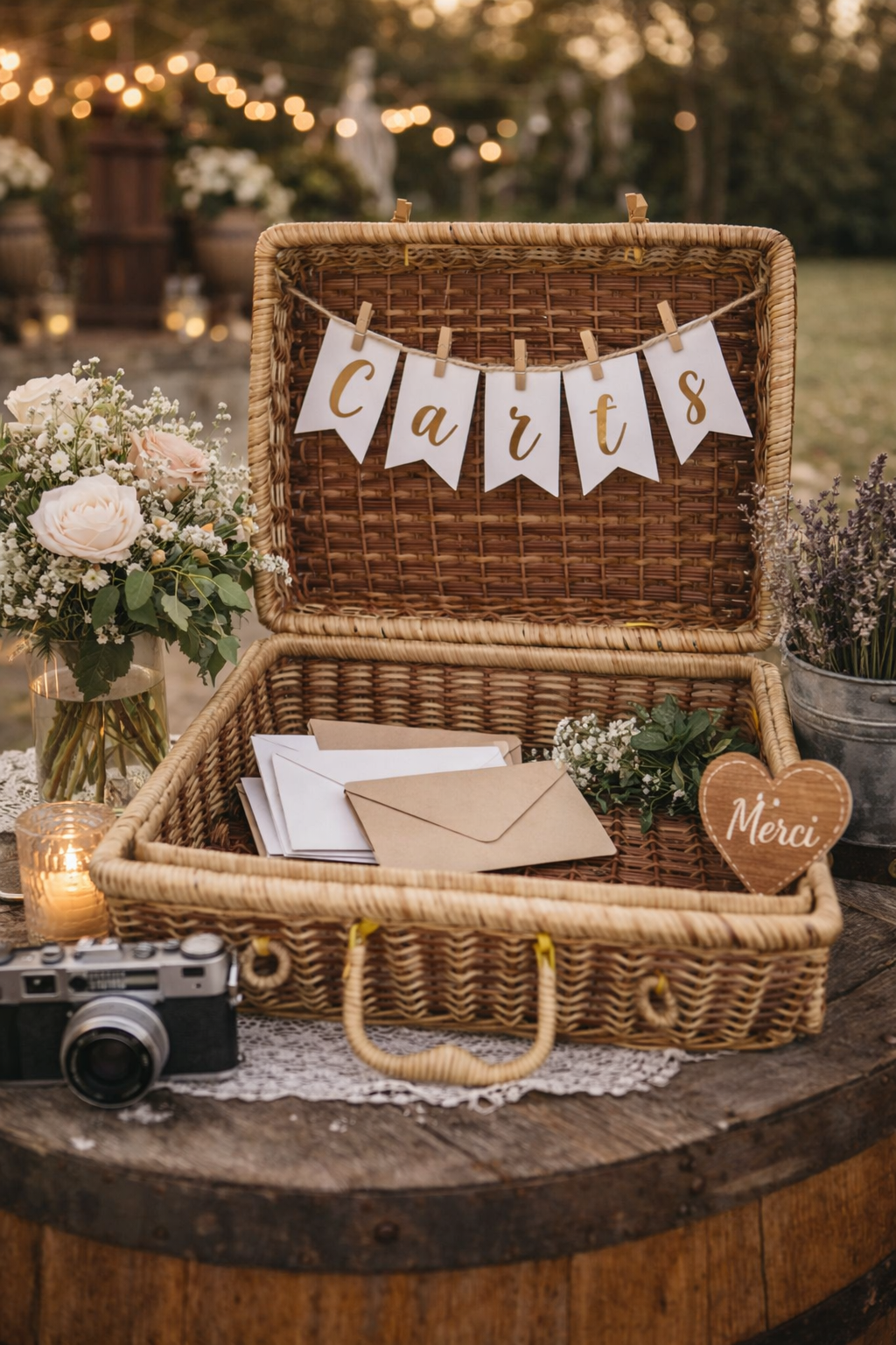 Apportez une touche d’authenticité et de charme à votre décoration avec cette valise/malle en osier. Idéale pour une ambiance bohème, champêtre, vintage ou thème voyage, elle trouve parfaitement sa place en décoration de salle, coin photobooth, table cadeaux ou espace d’accueil. Pratique et esthétique, elle peut également servir de support décoratif pour fleurs, accessoires .