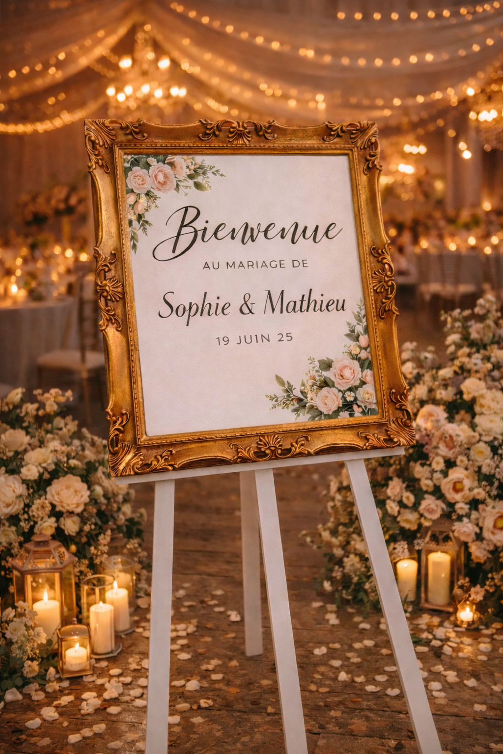 Apportez une touche chic et élégante à vos événements avec ce cadre en bois doré équipé d’un miroir. Parfait pour afficher votre plan de table, message de bienvenue ou informations importantes, il combine esthétique raffinée et praticité pour vos mariages, réceptions ou événements privés.