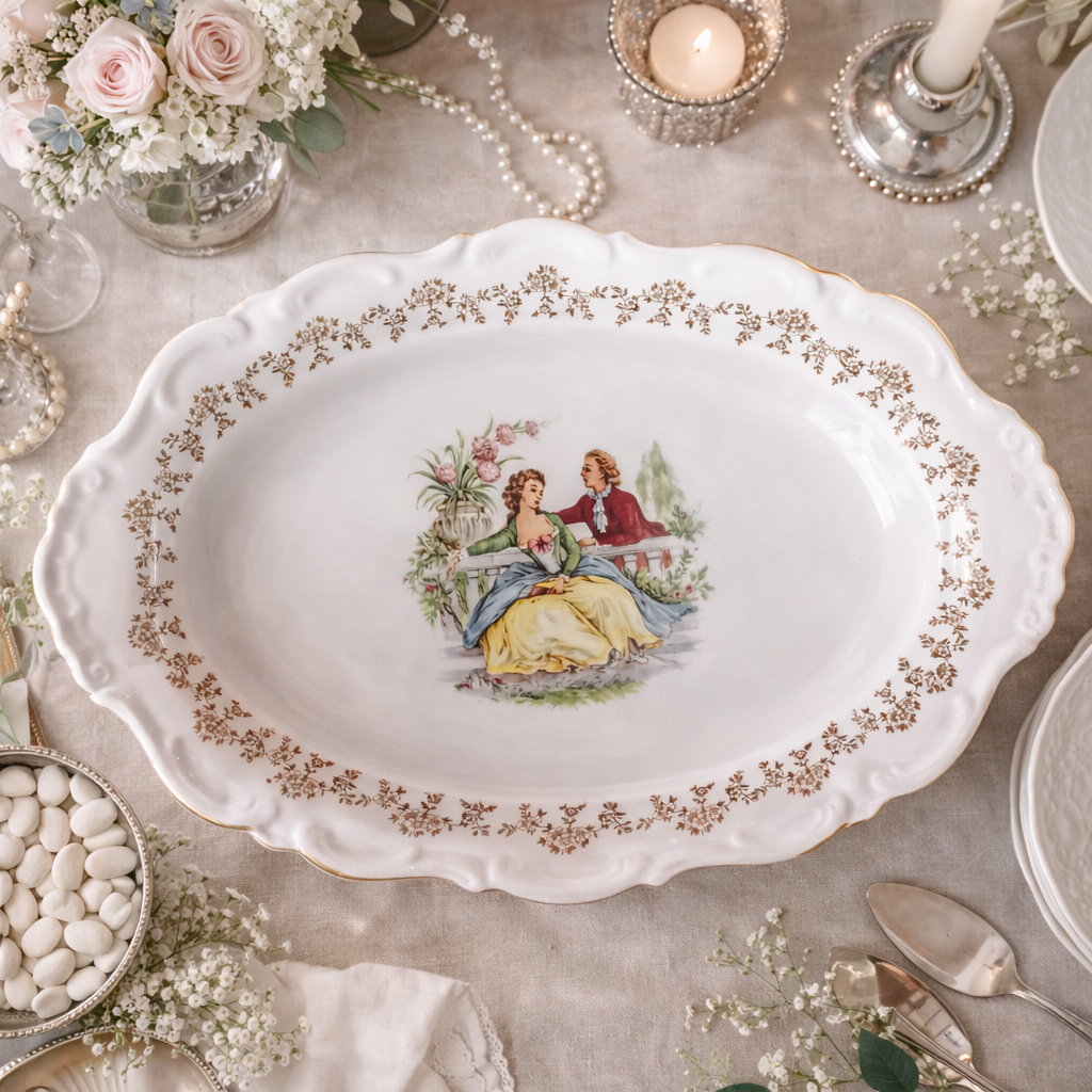 Sublimez votre décoration de table avec ce magnifique plat en porcelaine orné de délicates finitions dorées. Son design raffiné, agrémenté d’un motif romantique et d’un contour finement travaillé, apporte une touche d’élégance et de prestige à votre mise en scène. Parfait pour une ambiance vintage, chic, bohème ou champêtre, ce plat devient un véritable élément décoratif au cœur de votre réception.