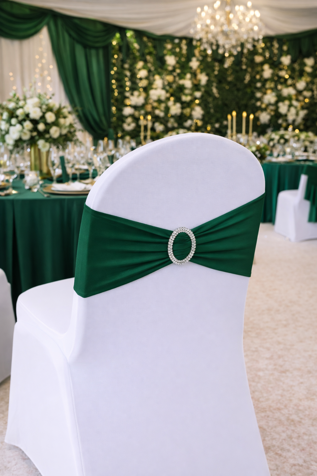 Pour un rendu parfait, choisissez nos bandeaux de chaise en location. Le rendu est sublime une fois installés sur des housses de chaises blanche.