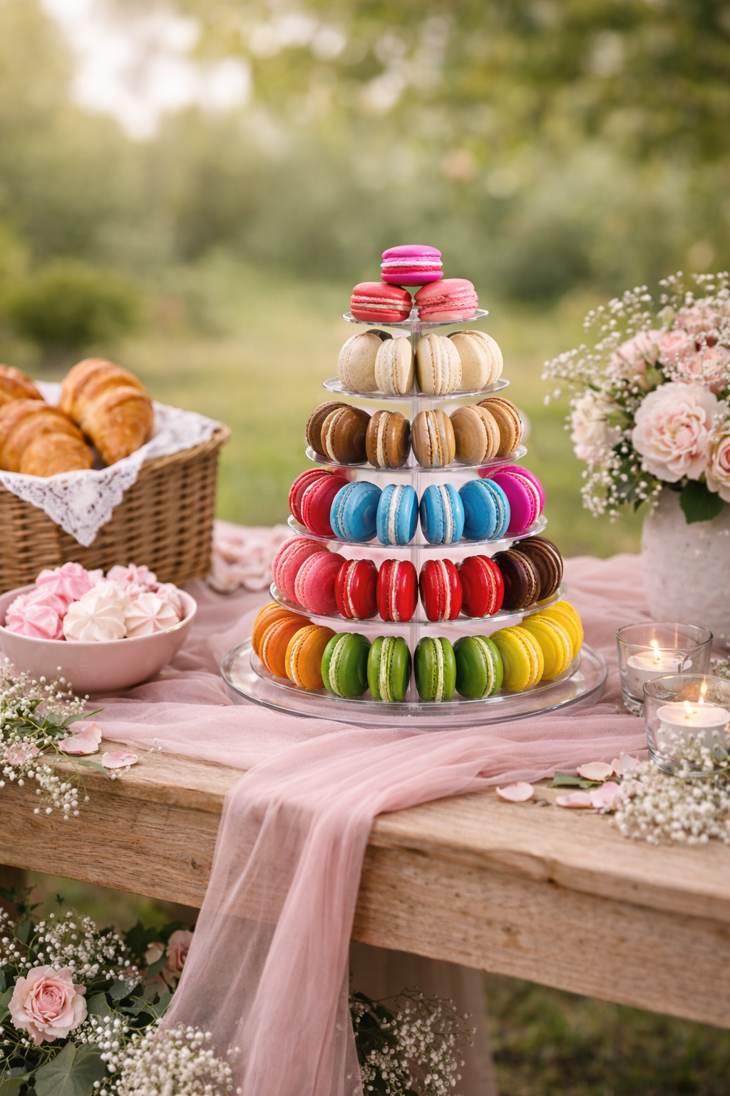Sublimez vos douceurs avec ce présentoir à macarons élégant et pratique. Idéal pour mettre en valeur vos macarons lors de mariages, anniversaires, baby showers ou tout autre événement festif, il apporte à la fois style et organisation à vos tables. Son design raffiné s’intègre parfaitement dans une décoration chic, gourmande ou thème pâtisserie.